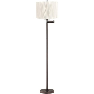 360 Lighting Gabrielle Modern 60 1/2" Tall Standing Floor Lamp Skinny Adjustable Swing Arm Brown Metal Bronze Finish Living Room Pleated Diamond Shade