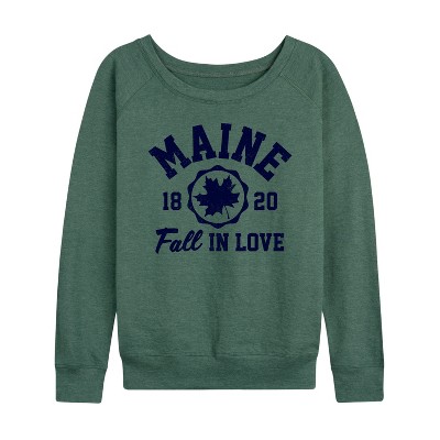 Women's - Instant Message - Maine 1820 Fall in Love Lightweight French Terry Wide Neck Long Sleeve Graphic Shirt