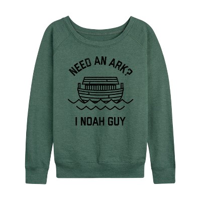 Women's - Instant Message - Need An Ark, I Noah Guy Lightweight French Terry Wide Neck Long Sleeve Graphic Shirt