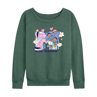 Women's - MTV - Funky Flower Dude Lightweight French Terry Wide Neck Long Sleeve Graphic Shirt