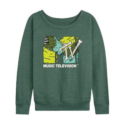 Women's - MTV - Logo Halloween Lightweight French Terry Wide Neck Long Sleeve Graphic Shirt