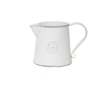 Slickblue Vintage Rustic White Metal Flower Pitcher Vase Small Decorative Jar for Tabletop or Shelf