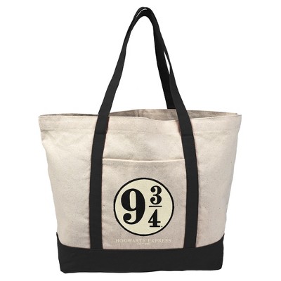 Harry Potter Hogwarts Express Tickets Canvas Tote Bag With External Pocket, Reusable Shoulder Bag for Shopping, School, Beach, Black