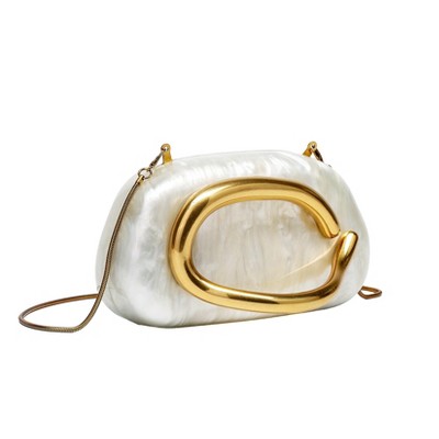 Ladies' gold Handbag with Detachable Chain, Acrylic Evening Gift Bag for Weddings and Cocktail Parties, Fashionable Metal Handle