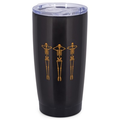 Elanze Designs Hear See Speak No Evil Skeleton Halloween Wrap-Around Design 20 Ounce Stainless Steel On-The-Go Coffee Mug, Thermal Travel Tumbler with