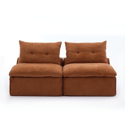 Gulches 2 Seater Modular Sofa No Armrests DIY Soft Chenille Fabric Neck Lumbar Pillows Orange for Small Spaces Reading Nook Apartment