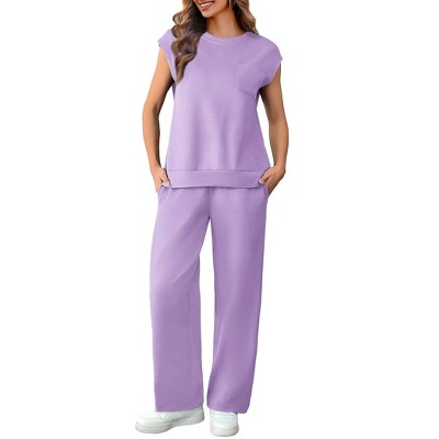 Pinspark 2 Piece Sets for Women Summer Lounge Set Cap Sleeves Sweatsuit Cropped Wide Leg Pants Matching Travel Tracksuit
