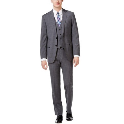 Calvin Klein Mens Plaid Windowpane Two Button Formal Suit