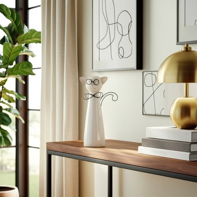 Sagebrook Home Cat with Glasses Sculpture - Contemporary Ceramic White Cat Statue with Black and Beige Accents for Home