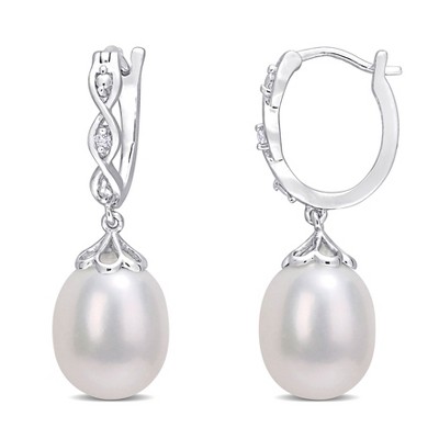 EVERLY JEWELRY | Sterling Silver 0.02 CT Diamond TW 8 - 8.5 MM Cultured Freshwater Pearl Cuff Earrings