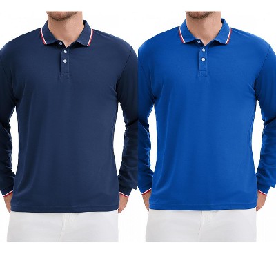 INSPIRE CHIC Men's Classic Regular Fit Solid Long Sleeves Business Golf Polo Shirts 2 Packs