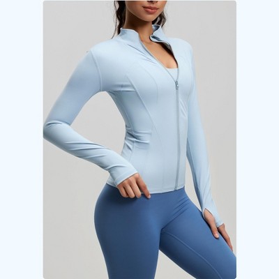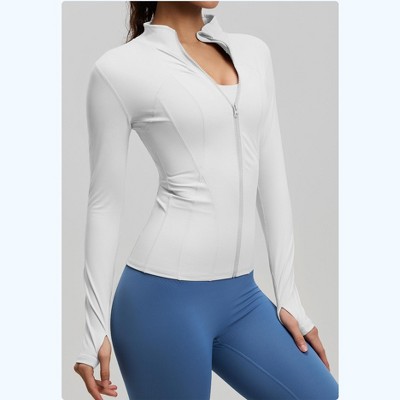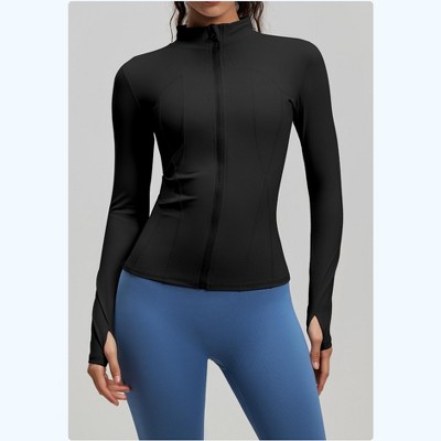 Coolmee Women's Yoga Running Workout Jackets Full Zip Long Sleeve Athletic Slim Fit Tops Zipper Shirts with Thumb Holes