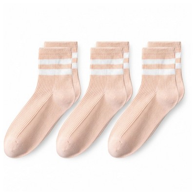 Anna-Kaci Women's 3-Pair Antibacterial and Breathable Ribbed Ankle Socks with Double Stripe Cuffs