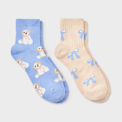 Women's Shih Tzu Love 2pk Cozy Quarter Crew Socks - Blue Combo 4-10