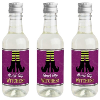 Big Dot of Happiness Happy Halloween - Mini Wine and Champagne Bottle Label Stickers - Witch Party Favor Gift for Women and Men - Set of 16