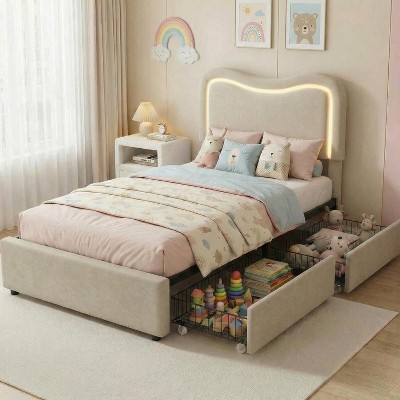 - led storage platform bed