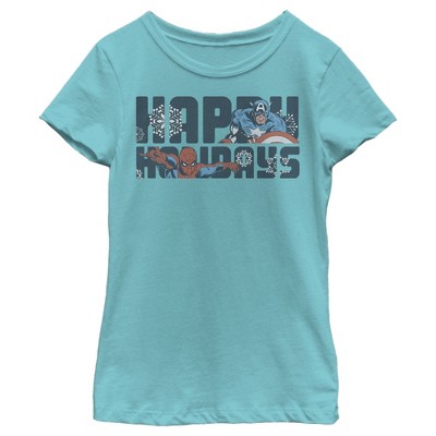 Girl's Marvel Happy Holiday Heroes T-Shirt