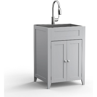 Karl Home Gray 24-Inch Laundry Sink With Cabinet And Pull-Out Sprayer Faucet