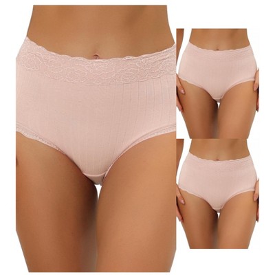 Allegra K Women's High-Waisted Tummy Control Comfortable Lace Trim Ribbed Briefs 3 Packs