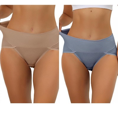 Allegra K Women's High Waist Tummy Control Color-Block Brief 2 Pcs