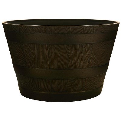 Southern 12.2 in. H X 20.5 in. W X 20.5 in. D Resin Whiskey Barrel Planter Brown