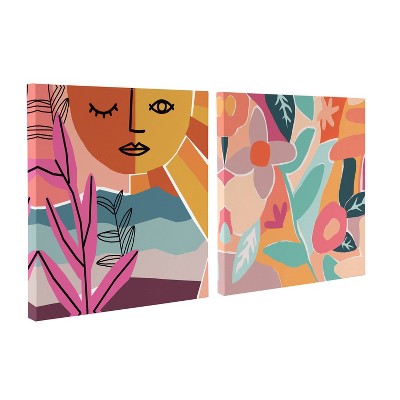 (Set of 2) 20" x 20" Peace Love Flowers by Kate Aurelia Holloway Unframed Wall Canvas Set - Kate & Laurel All Things Decor