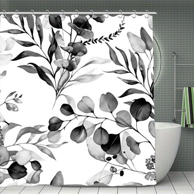 Black Eucalyptus Leaf Shower Curtain, Black Botanical Plants Bathroom Curtain Bathtub Home Decor Waterproof Fabric 70.8x70.8Inch