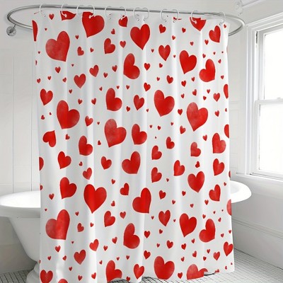 Nertpow 1PC Romantic Heart-Shaped Shower Curtain with 12 Hooks, Red Heart Pattern, Machine Washable Shower Curtain Decor for Bathroom.