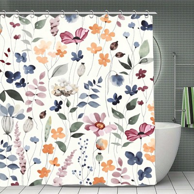 Spring Floral Shower Curtain, Waterolor Flowers Butterfly Plant Wildflower Bathroom Decor Polyester Fabric Waterproof Bath Curtain 70.8x70.8Inch