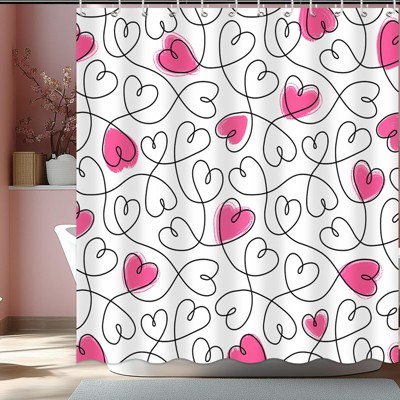 70.8"x70.8" Valentines Shower Curtain,Pink Heart Valentine Days Bath Curtain for Valentines Bathroom Decor