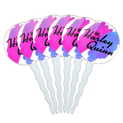 Harley Quinn Animated Series Logo Cupcake Picks Toppers Decoration Set of 6