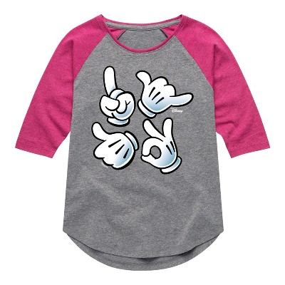 Girls' - Disney - Mickey Hand Emojis Shirt Tail Raglan Graphic T-shirt