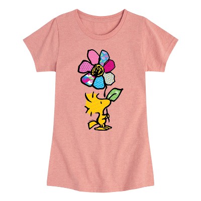 Girls' - Peanuts - Woodstock With Flower And Pattern Fitted Short Sleeve Graphic T-Shirt