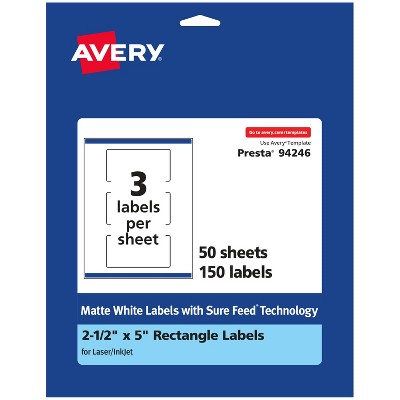 Avery Matte White Rectangle Labels, 3" x 3.75"