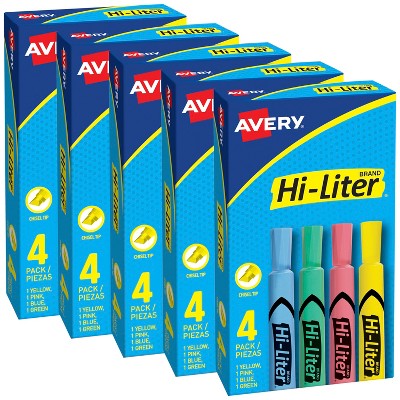 Avery Desk-Style Highlighters, 4 Assorted Colors Per Pack, 5 Packs, 20 Highlighters Total (17752)