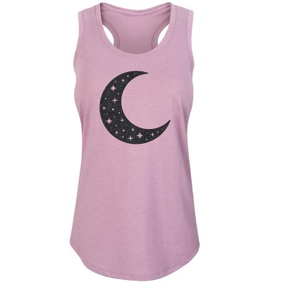 Women's - Instant Message - Crescent Moon Stars BLACK GLITTER Graphic Racerback Tank
