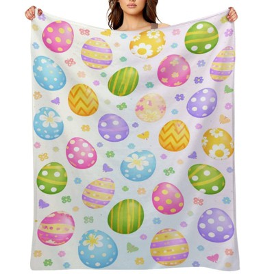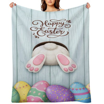 Flannel Throw Blanket Happy Easter Bunny Eggs Cozy&Soft Plush Blankets for Bed Couch Living Room Sofa Chair 40x50 inches