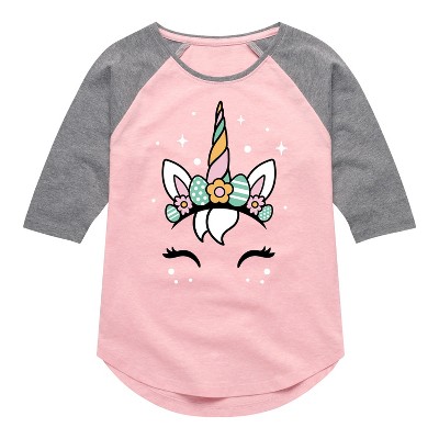 Girls' - Instant Message - Pastel Easter Unicorn Shirt Tail Raglan Graphic T-shirt