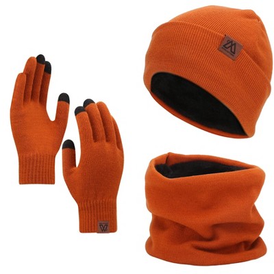 Mysuntown Winter Beanie Hat and Gloves for Women & Men, Winter Hat Scarf and Touch Screen Gloves 3-Piece Set, Cold Weather Knit Fleece Lined Warm Sets