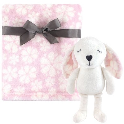 Hudson Baby Infant Girl Plush Blanket with Toy, Modern Bunny, One Size