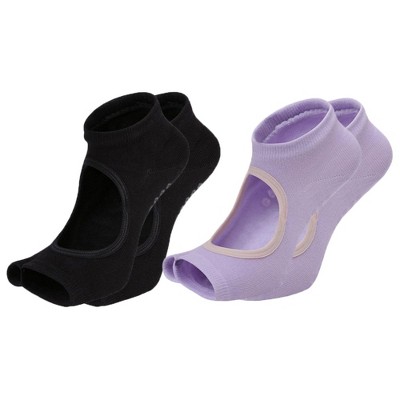 Anna-Kaci Women's Open Toe Yoga Socks with Anti-Slip Grip Sole Breathable Fabric for Barre and Pilates 2-Pack