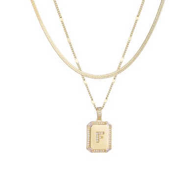 Adornia 14k Gold Plated Pave Tag Pendant and Herringbone Chain Necklace Set