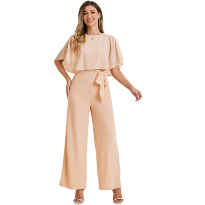 INSPIRE CHIC Women's Casual Dressy Cape Ruffle Sleeve Tie Waist Wide Leg Jumpsuits