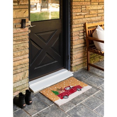 18"x30" Holiday Merry Wreath Coir Doormat Natural and Green