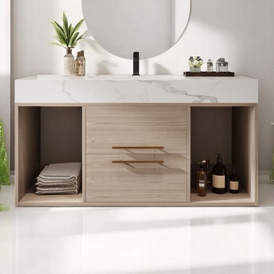 CAVINAS Bathroom Vanity with Ceramic Sink and Adjustable Shelves,Modern Freestanding Bathroom Vanity with Solid Wood Frame and 3 Drawers