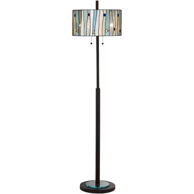 HomeStock VINCENT Tiffany-Style Blackish Bronze 1-Light Mission Reading Floor Lamp 11" Shade