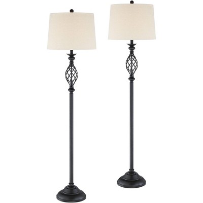 Franklin Iron Works Tristan Industrial Rustic 64" Tall Floor Lamp Smart Socket Deep Bronze Sheer Outer Linen Inner Shade for Living Room