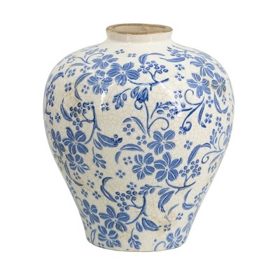 AEELLEEA Round Ceramic Flower Vase, Retro Rustic Chinoiserie Vase for Farmhouse & Modern Decor
