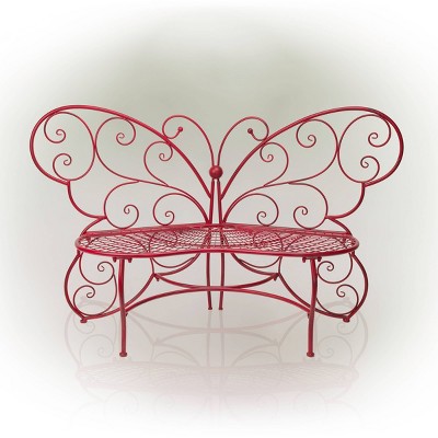 Butterfly Metal Bench Red - Alpine Corporation: Durable Garden Seating, Weather-Resistant Iron Construction
