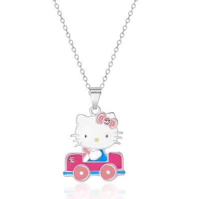 Sanrio Hello Kitty Brass Enamel and Pink Crystal Car 3D Pendant, 16+ 2'' Chain